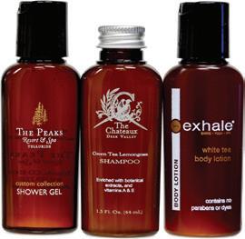 • 6 different bottle colors that can be custom private labeled with your property’s logo.