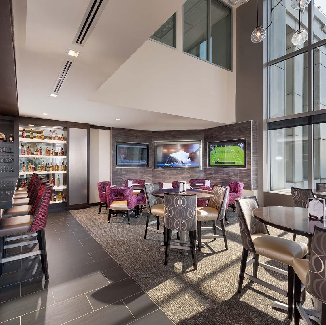 That décor also provides more variety and options for dedicated work spaces that have member-facing technology—a place to work between meetings in the city. But it’s not just about work, it’s also about play; city clubs also feature more media areas within the casual seating areas and large screen televisions in demand from younger members.
