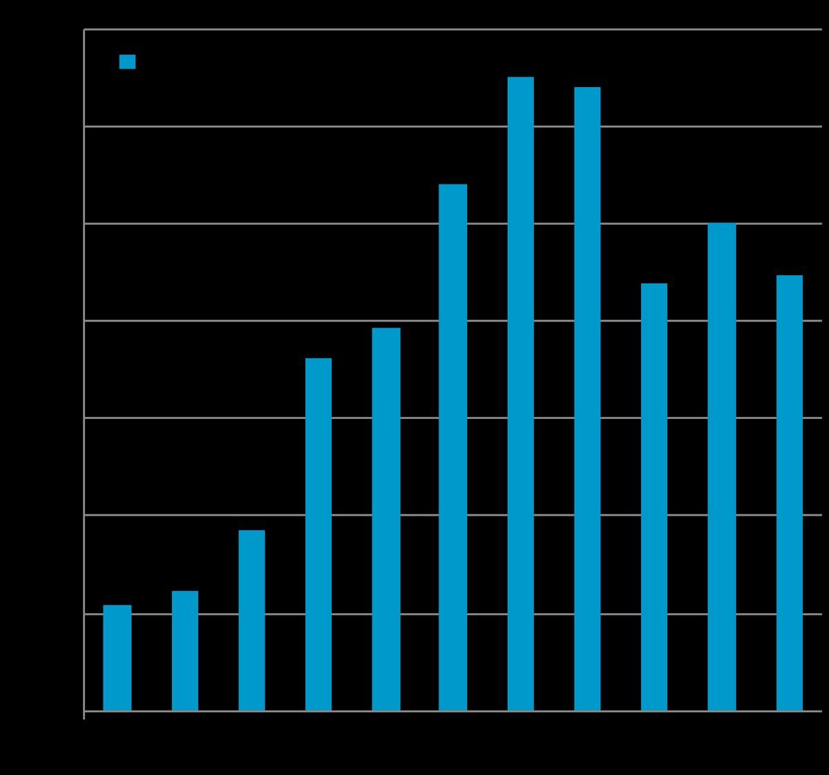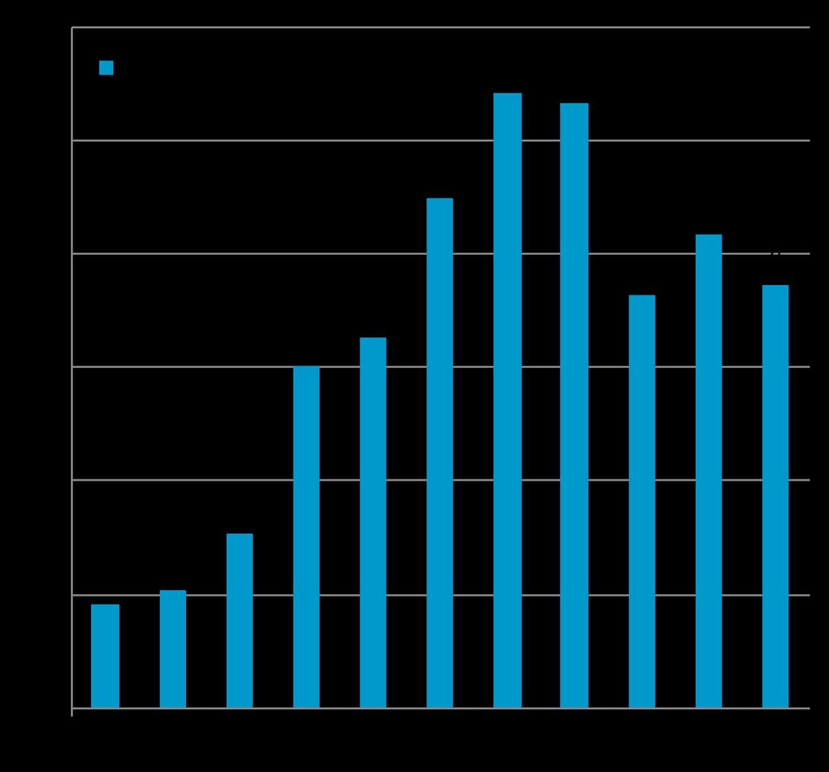 nye seniorboliger i seniorbofællesskaber opgjort pr. år (1988 - 2027)