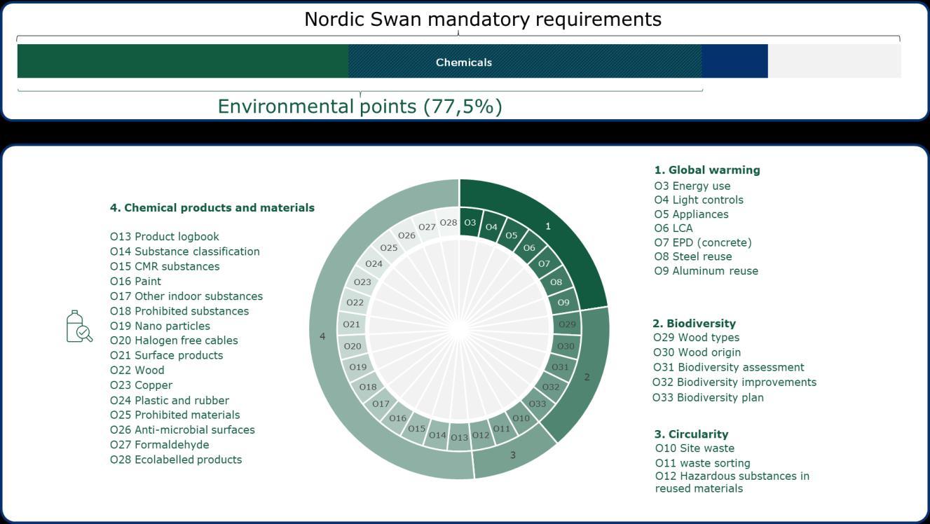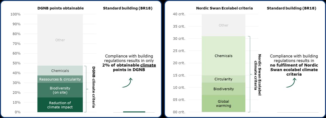 Note: DGNB manual 2025 for residential buildings and Nordic Swan Ecolabel 4.6 compared to
