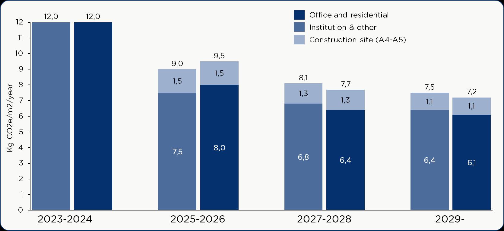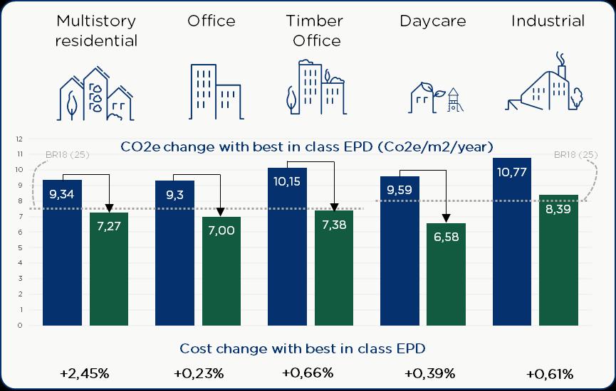 Comparative LCA analysis: With the introduction of LCA-requirements in building regulations, the missing link of obtaining comparable emissions data for certified and non-certified buildings are underway. Once additional relevant buildings under BR18 (2023) are finished, an evaluation of certifications effect on emissions will be possible.