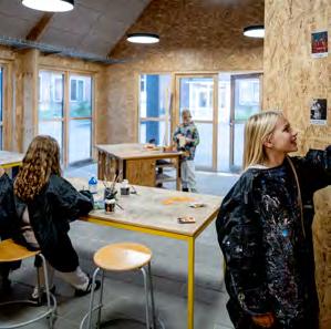 ningsbaseret børne- og læringssyn. Det bliver godt, når de ikke skal lykkes på trods af skolens rum og struktur, fordi vi får modet til at lade børne- og læringssynet manifestere sig i skolens indretning.