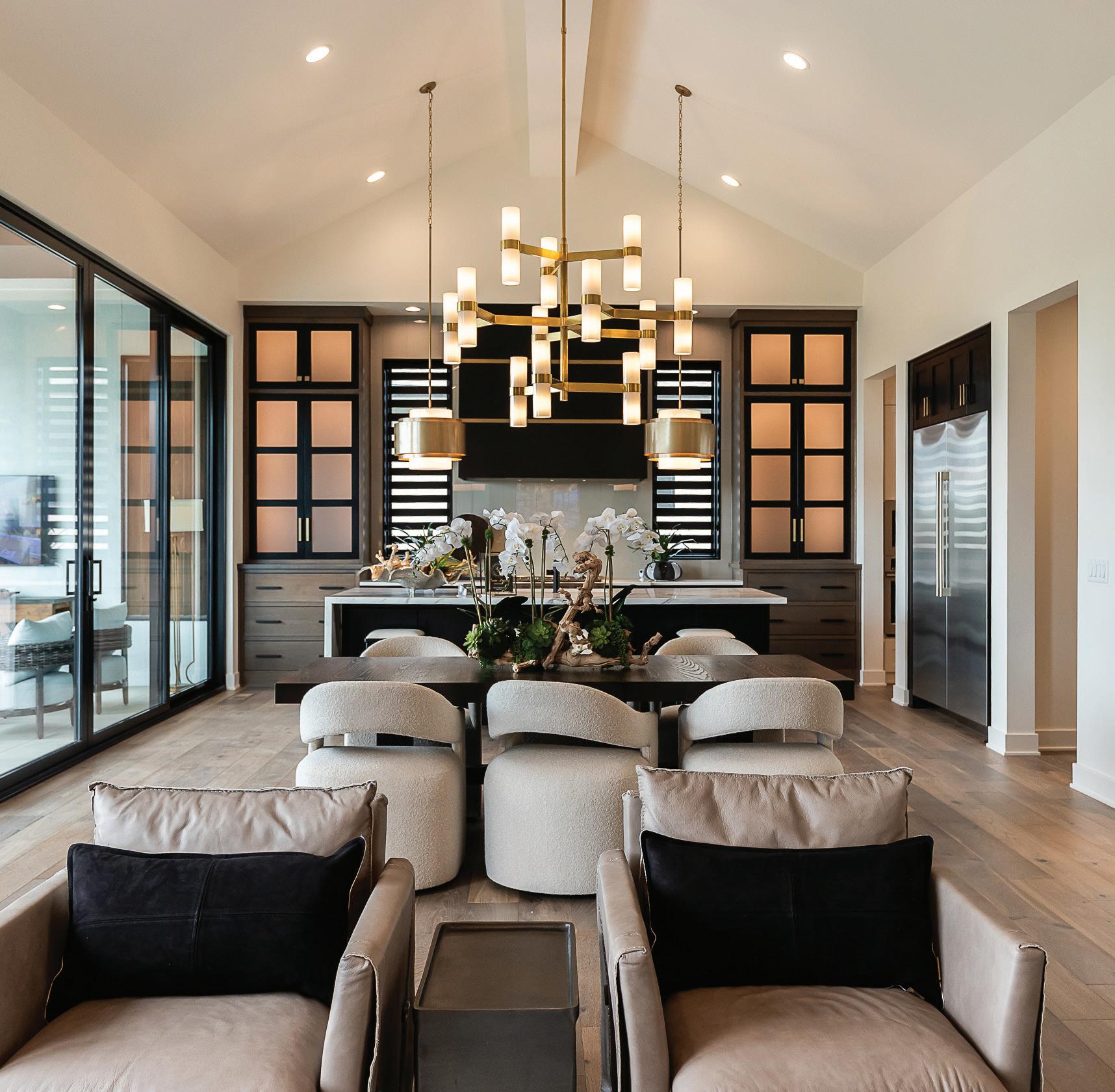 Each home features an open and inviting design, with an 11-foot-wide entry leading to a Great Room with soaring 11-foot ceilings. The kitchen is positioned for openness, connecting seamlessly with the living and dining areas. The primary bath includes a spacious, 30-square-foot zero-entry walk-in shower with a built-in bench, shelving, two shower heads, and floor-to-ceiling tile. The Prescott and Catalina models, averaging 2,553 square feet, include two bedrooms and two full baths on the main level, along with a finished lower level featuring a large family room, wet bar, two additional bedrooms, and another full bath. An optional sunroom allows for even more natural light, with walls of windows providing yearround views.