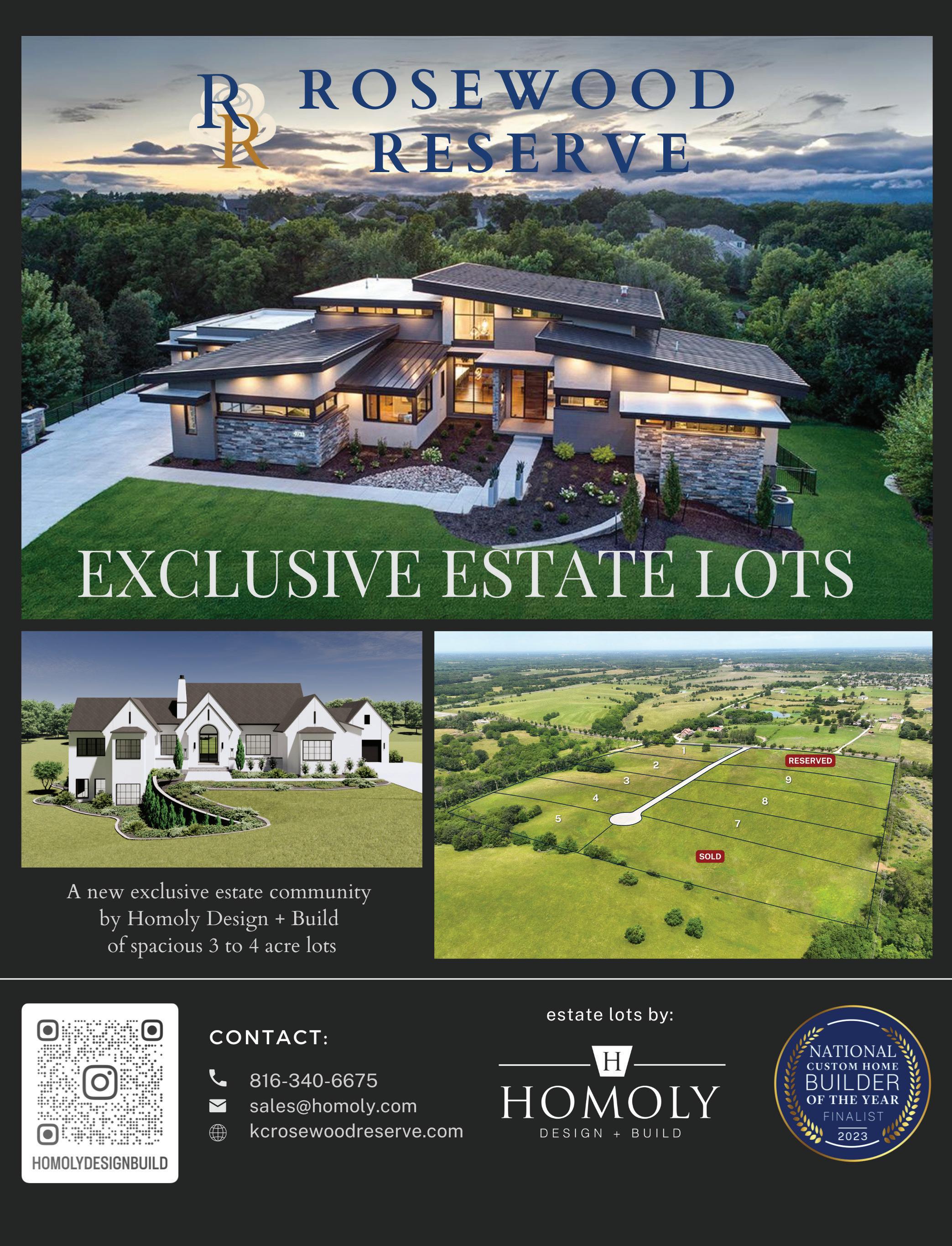 Tucked away in the heart of South Overland Park, Woodmyre is an upcoming, single-family community, where thoughtful design and natural surroundings meet everyday modern luxury. A collaboration between Lambie Grand, LLC, dba Lambie Homes and B.L. Rieke Custom Homes, this intimate development offers 85 stunning homesites, abundant green space, and a hand-selected team of premier local builders— Walker Custom Homes, JFE Construction, Edward Franklin Building Company, and Bickimer Homes—ensuring each residence reflects high-quality craftsmanship and unique architectural detail.