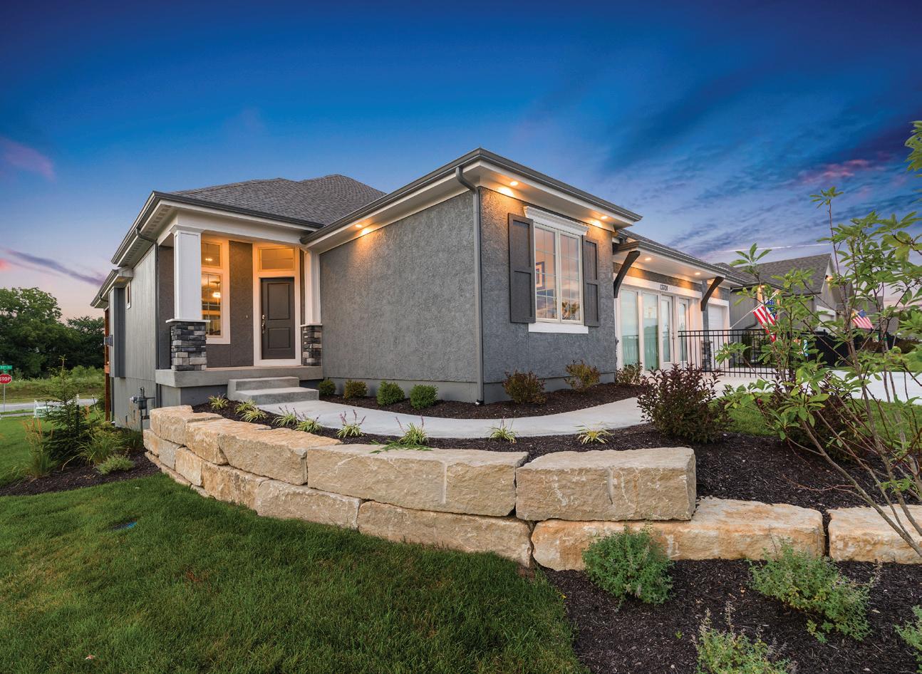 Prime Development announces its latest offering to new-home buyers: Prairie Canyon, a premier maintenance-provided community in northwest Olathe. Located just west of K-7 and south of College Blvd., this masterplanned neighborhood features 175 stunning homesites, many with wooded views and walkout basements—it’s a blend of nature and convenience. Phase I includes 44 spacious lots, perfect for modern home designs with three-car garages.