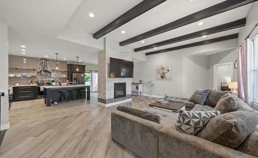 $3,200,000 6BR/5FBA/3HBA Luxury 1.5-story Larson home on wooded acre with gourmet kitchen, main-floor suite, loft, theater, bar, gym, golf sim, and 4-car garage. multiple levels of living spaces, heated infinity pool, fire pits.