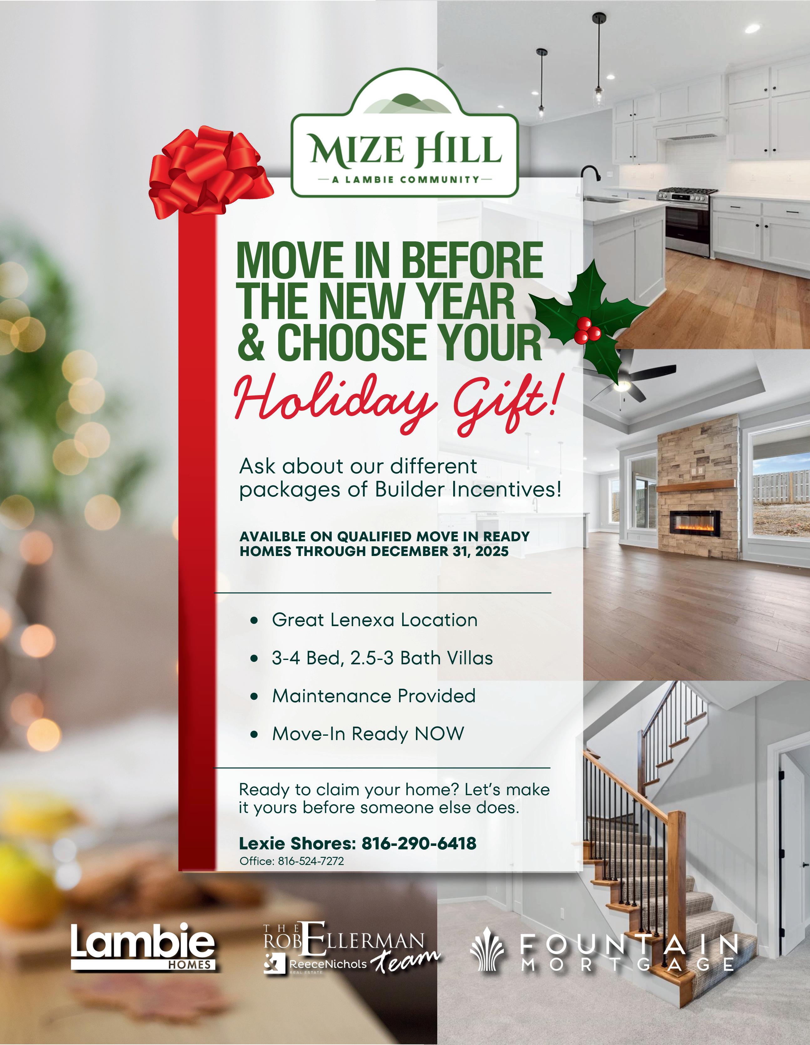 Timber Ridge is a 17-acre maintenanceprovided community that will feature 68 attached villa homes designed for easy living and modern comfort, with open layouts, spacious basements, and plenty of green space. Floor plans, pricing, and grand opening details will be coming soon on this Cass County builder partner and community. To learn more about this exciting new project, contact The Rob Ellerman Team/ReeceNichols at 816-441-7729 or see all of the new home communities across the metro at ellermanteamnewhomes.com.