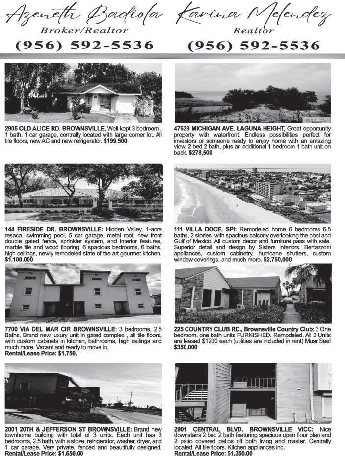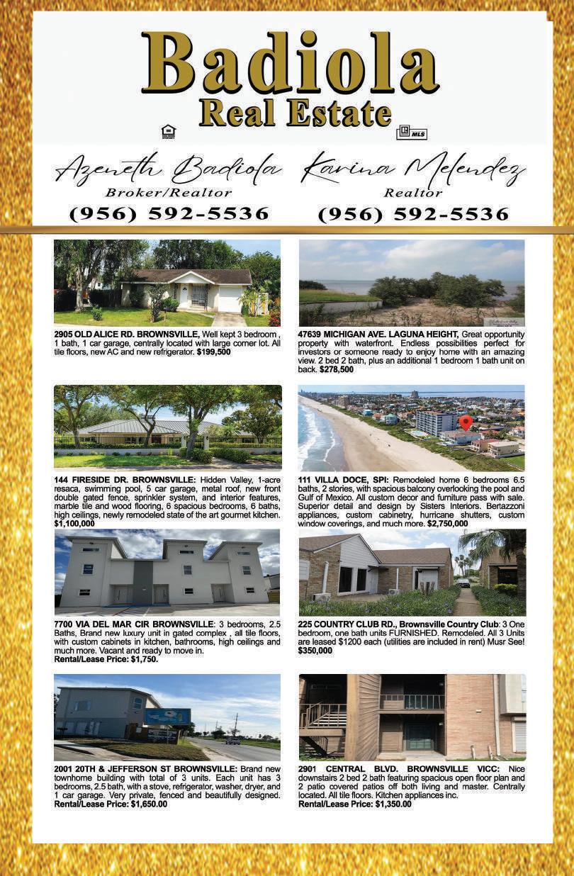 and spacious 5 bedroom, 5 bath on 2 lots. 1,100,000 PENTHOUSE WWW.CAMERONCOUNTYSOURCE.COM • PAGE 27