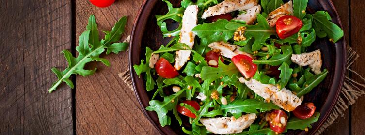 • Ensalada de tomate deshidratado con slice de suprema de pollo crocante, mix verde, parmesano, croutons y aderezo tradicional.