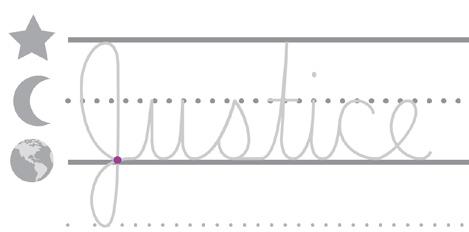 • N ext, write the word Justice in cursive in the same row. Make sure to include a finger space in between the word you traced and the word you write.”