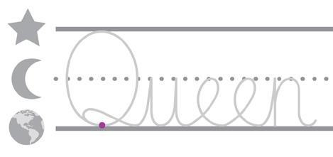 • N ext, write the word Queen in cursive in the same row. Make sure to include a finger space in between the word you traced and the word you write.”