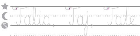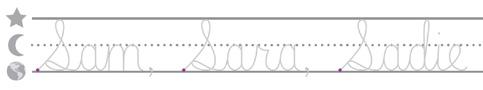 • N ext, write the words Josie Quinn in cursive in the same row. Make sure to include a finger space in between the word you traced and the words you write AND between each of the names.”