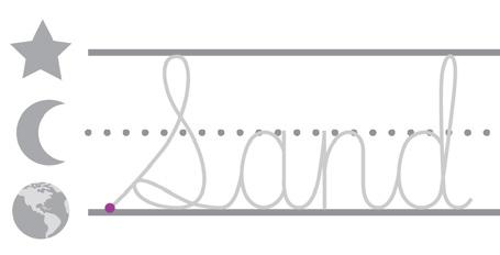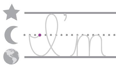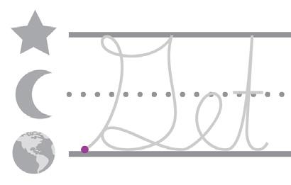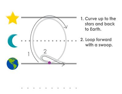 • Earth line. Curve up to the stars and back to Earth. Loop forward with a swoop. Slope up to the moon. Fall to Earth and curve back up to the moon. Fall back down to Earth with a swoop.