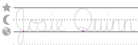 • Watch me trace the words Josie Quinn and pay attention to the transition between the capital letters and the lowercase ones.”