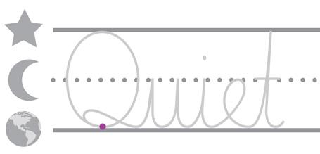 SAY “Watch me trace the word quiet, as in ‘Quiet is expected in the library at all times.’”