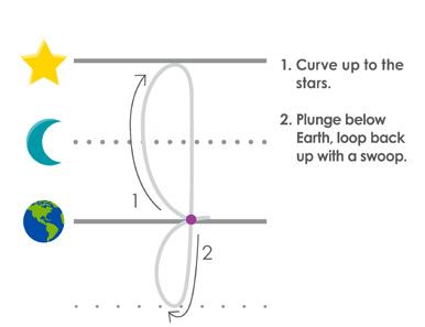 • Earth line. Curve up to the stars. Plunge below Earth and loop back up with a swoop.