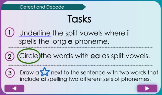 • I s ee three vowels, e, a, and e (Click to underline the vowels.)