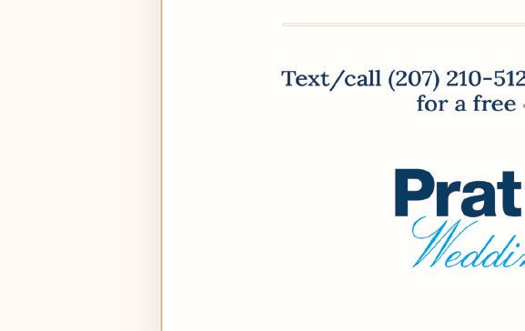 Choose your favorite professional from our team of Licensed Marriage Officiants and Ministers who will craft a beautiful ceremony for you offering unique options, readings, vows and traditions to select from. Packages may include your ceremony, rehearsal, flowers, photos, video, cake, honeymoon suite, DJ, Day of Coordinator and more! Statewide • 207-504-4101 Mobile ~ Text Anytime! www.allin1weddings.com