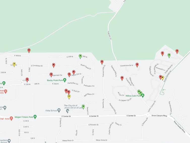 3 HOMES CURRENTLY PENDING For more information about any available home, contact us today at 435.668.3115 STATUS ADDRESS SUBDIVISION BEDS BATHS EST. SQ. FT. LIST PRICE SOLD DATE Sold 382 E 250 N Red Mountain Est 5 4.5 4,732 $1,250,000 06/22/23 Sold 387 E 400 N Red Mountain Est 4 3.5 2,696 $1,290,000 06/02/23 Sold 972 E Citadel Road Citadel 7 5.5 4,810 $1,799,999 05/12/23 Sold 340 N Snow Canyon Drive #10 Vermilion Cliffs 3 2.0 2,200 $795,000 04/28/23 Sold 250 N Snow Canyon Drive #3 Eagle Rock 3 2.0 1,608 $525,000 04/26/23 Sold 272 N Painted Hills Drive Citadel 4 2.5 2,829 $1,150,000 04/26/23 Sold 546 E Crestview Palisades 3 4.0 2,941 $1,295,000 04/04/23 Sold 248 N Crestview Drive Palisades 3 3.5 3,147 $1,199,000 04/03/23 Sold 1067 Grandview N Drive Citadel Est 3 2.5 3,055 $1,100,000 02/07/23 Sold 631 E Chameleon Draw Circle Palisades At Snow Canyon 3 3.5 2,948 $1,350,000 02/06/23 Sold 146 N Park Ave Way Palisades 3 3.0 2,379 $850,000 12/16/22 Sold 661 E Flint Rock Palisades At Snow Canyon 3 3.5 3,577 $1,899,999 12/09/22 Sold 340 N Snow Canyon Drive #23 Vermilion Cliffs 3 2.5 3,057 $1,239,000 12/08/22 Sold 636 E Flint Rock Circle Palisades At Snow Canyon 3 2.5 2,786 $1,285,000 12/07/22
