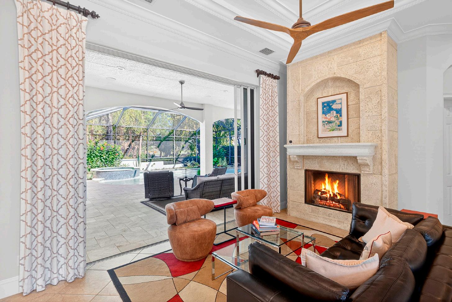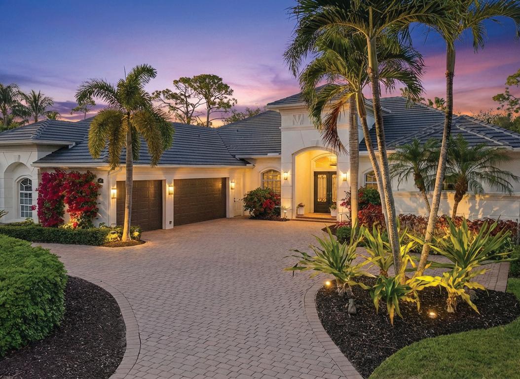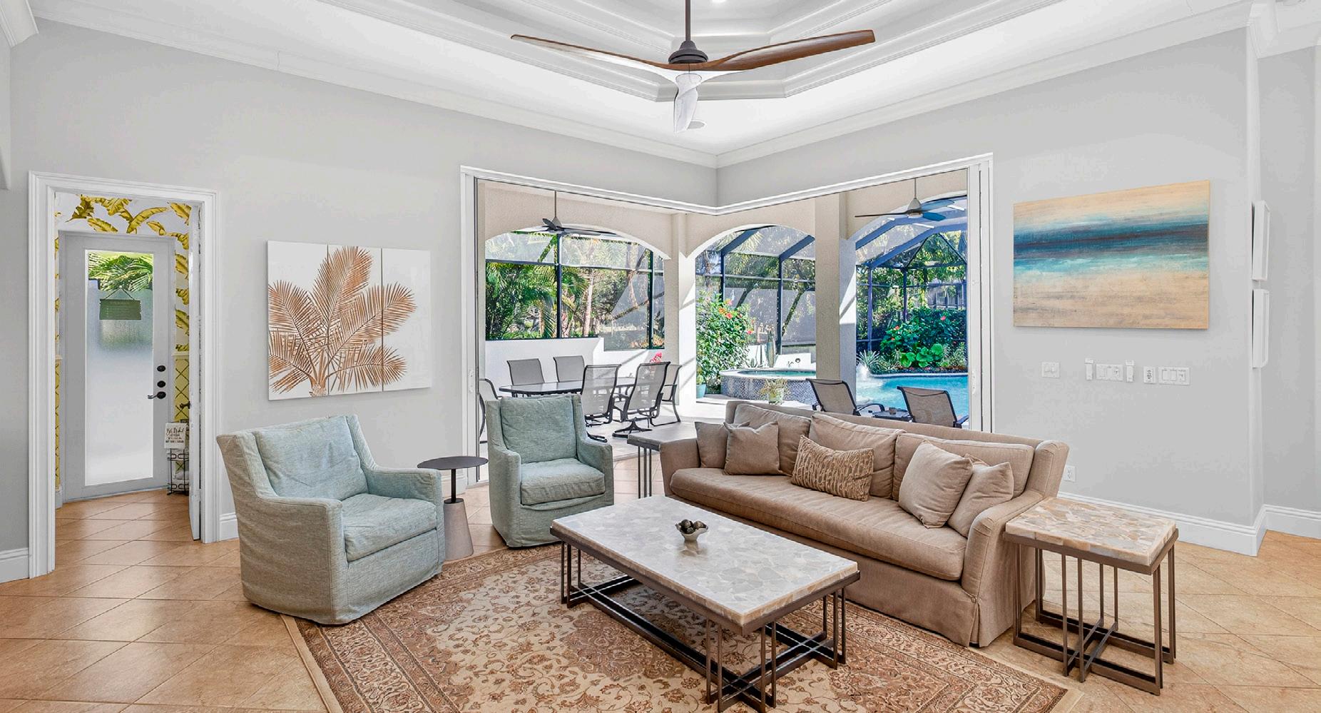This casually elegant residence combines luxury and nature in the prestigious Audubon Golf and Country Club, a rare offering west of 41. The entrance opens dramatically to stunning views through the living spaces onto an expansive lanai, a pool framed by lush landscaping, and the golf course beyond. The outdoor sanctuary blends seamlessly with generous living spaces, a beautifully renovated kitchen, and a family room, creating an entertainer’s delight. Easy living and an inviting layout are framed by a large bay window and zero-edge sliding glass doors that open to the spectacular lanai and pool. Inside, four generously proportioned bedrooms, each appointed with its own private en-suite bathroom, a distinguished study, and a powder room opening onto the lanai, complete the home. A Sonos sound system in the living room, family room, and primary suite provides entertainment. You will appreciate the generous 1,224 sq. ft. garage with the capacity for up to six vehicles.