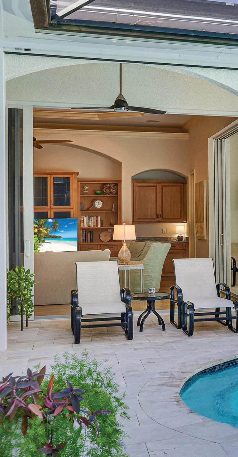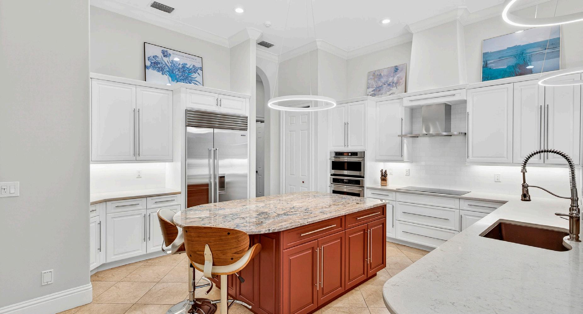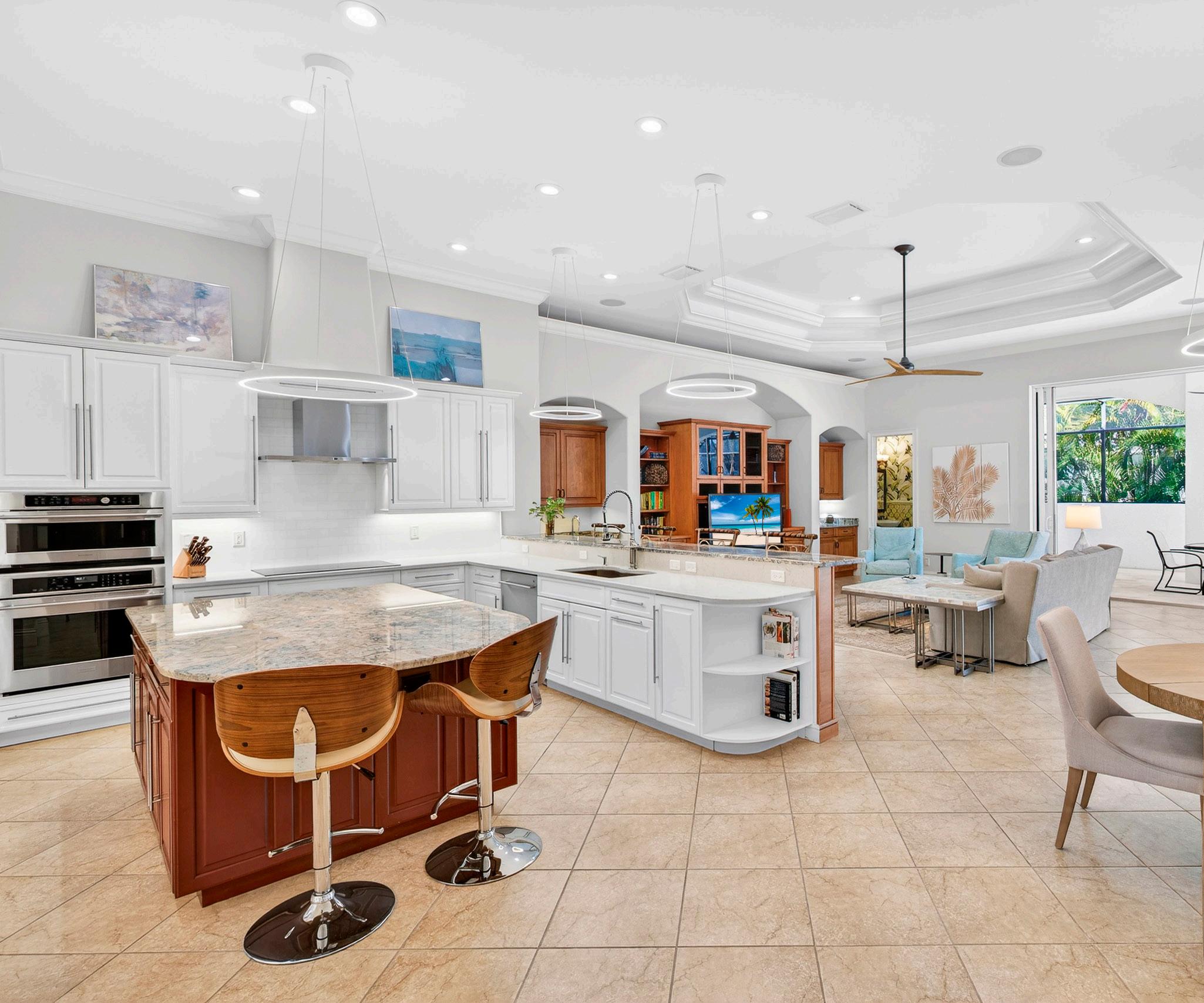 This casually elegant residence combines luxury and nature in the prestigious Audubon Golf and Country Club, a rare offering west of 41. The entrance opens dramatically to stunning views through the living spaces onto an expansive lanai, a pool framed by lush landscaping, and the golf course beyond. The outdoor sanctuary blends seamlessly with generous living spaces, a beautifully renovated kitchen, and a family room, creating an entertainer’s delight. Easy living and an inviting layout are framed by a large bay window and zero-edge sliding glass doors that open to the spectacular lanai and pool. Inside, four generously proportioned bedrooms, each appointed with its own private en-suite bathroom, a distinguished study, and a powder room opening onto the lanai, complete the home. A Sonos sound system in the living room, family room, and primary suite provides entertainment. You will appreciate the generous 1,224 sq. ft. garage with the capacity for up to six vehicles.
