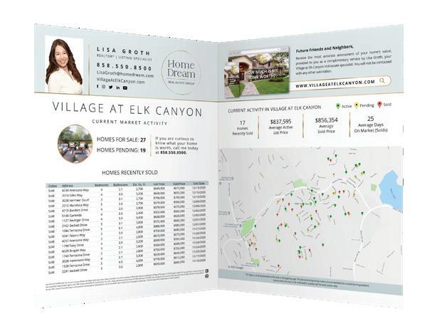 Elizabeth McQueen“I started with just 600 homes in one community, and I received seven calls off my first mailer. In a very short time period, I became the community specialist! When I walk into a home they already trust me, having seen my name on signs and marketing pieces. I now send out 1,200 pieces per month into two different neighborhood communities.”