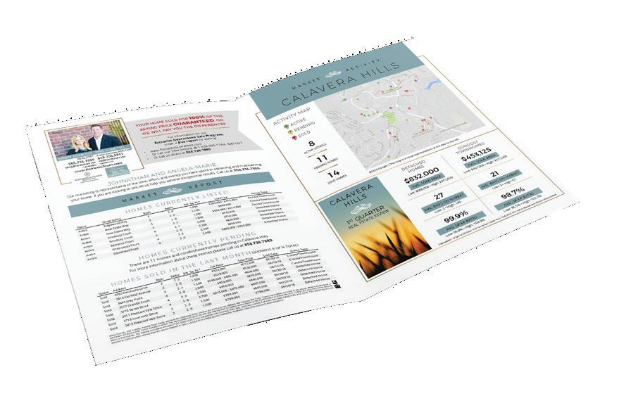This product is worked on monthly between the agent and their assigned designer. Monthly MLS data will be pulled, relevant market content will be suggested, and since this product is fully customizable, design changes are available upon request.