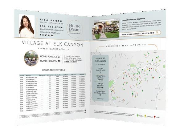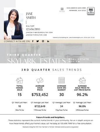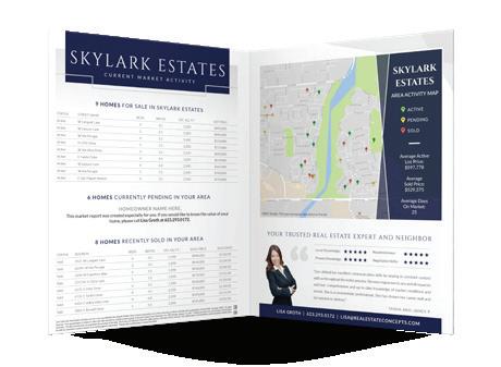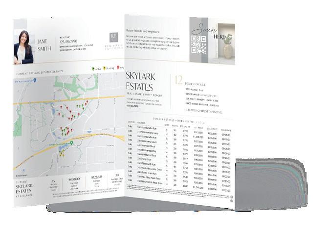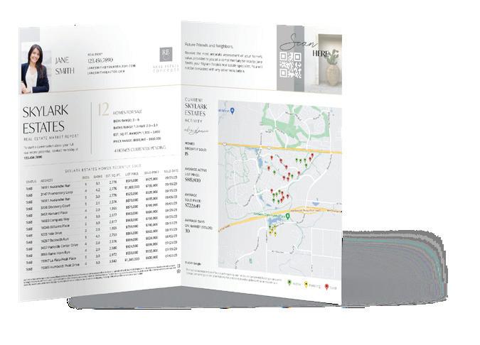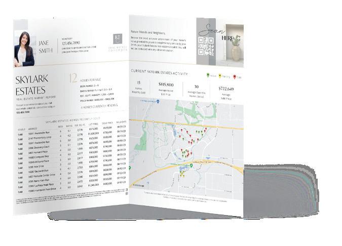 • Content: Pre-planned content, community stats, line-byline data, and appealing designs to attract the attention of every type of homeowner.