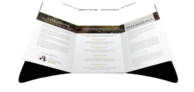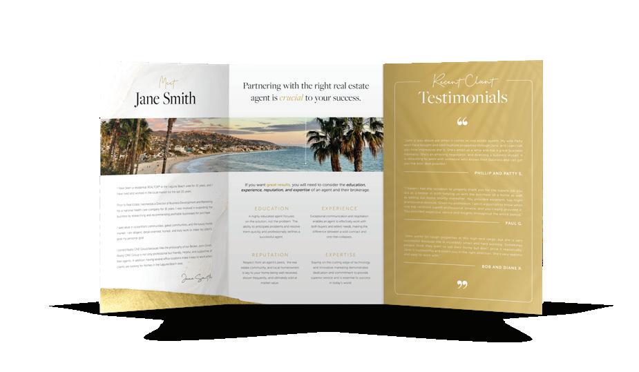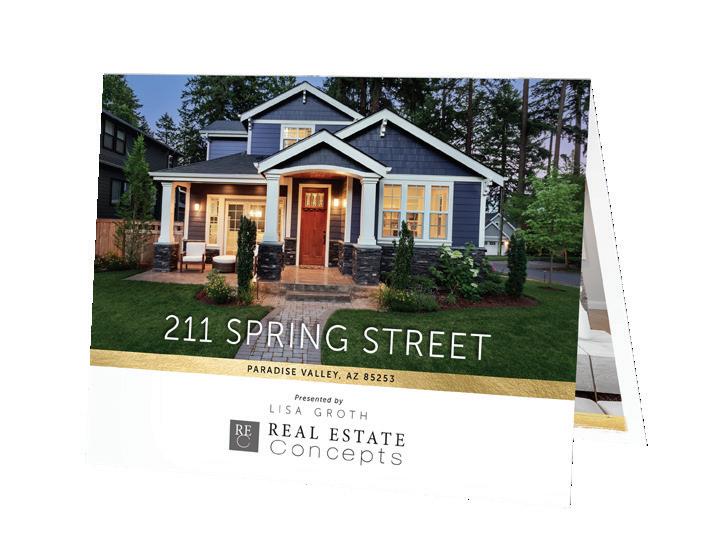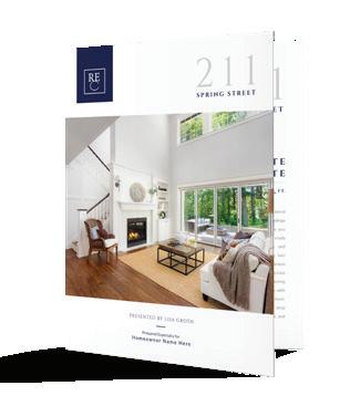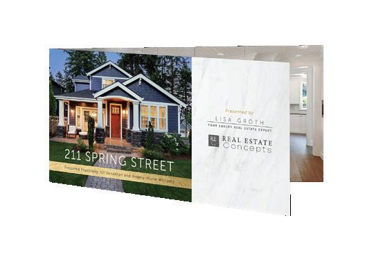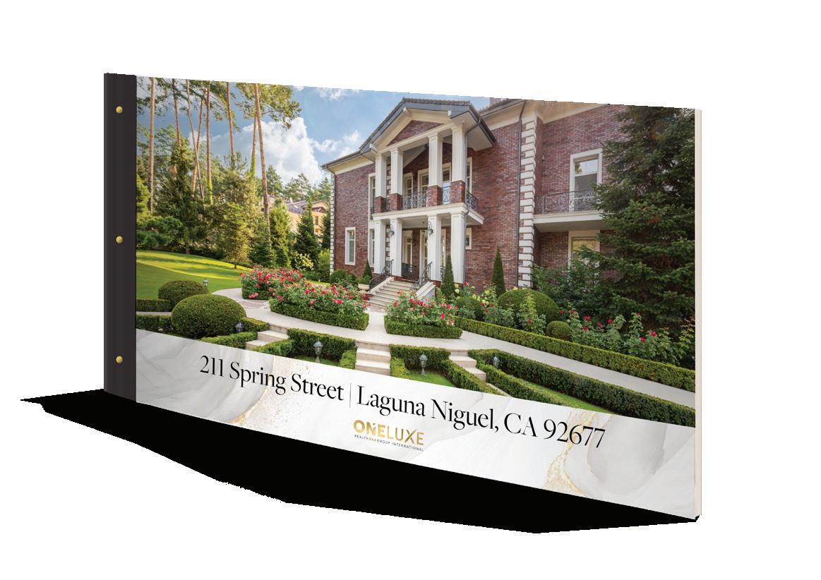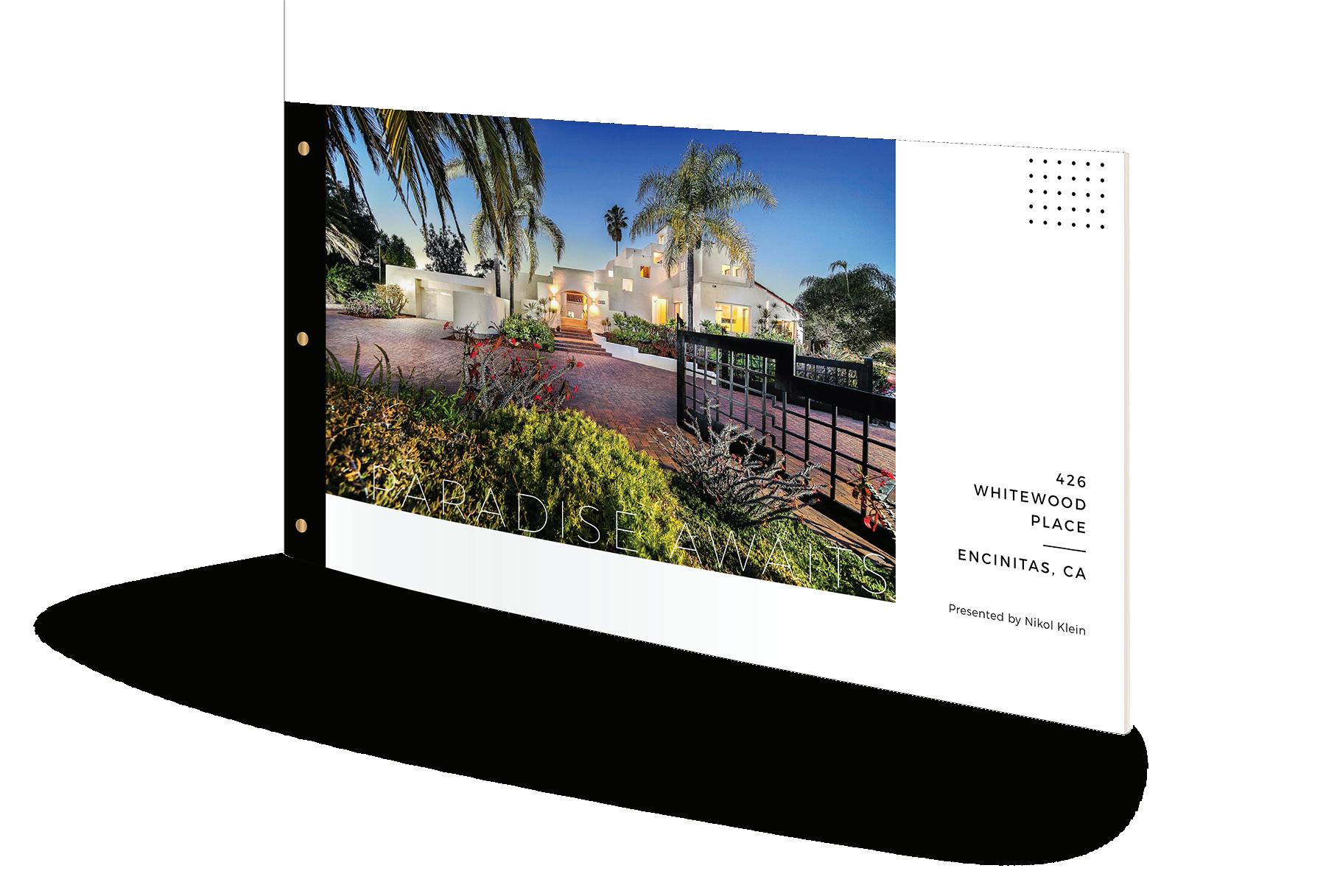 • Listing Presentation Book - Provide homeowners with an in-depth review of your marketing plan! Customized to your brand, this book provides an overview of your services, past success, and how you leverage your resources to maximize your clients’ return on investment.