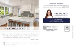 "Beautiful, top-rate, quality marketing that actually works to generate business for Realtors. I am stunned by the success I'm having. Today I'm taking my fourth listing over $1 Million from my Market Update direct mail piece (from the first 9 months of mailing). I've referred this product to other agents who've also had success, and that makes me feel even better!"