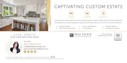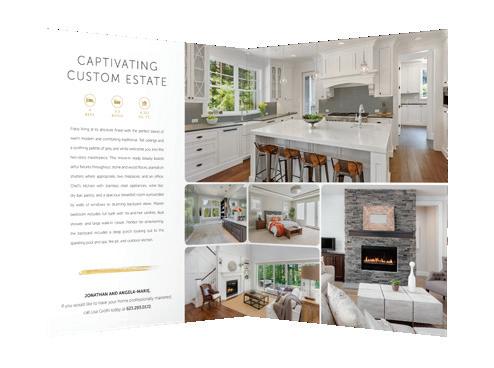 Professional. Beautiful Design. Rich in Details. These are the cornerstones of each Property Brochure and Postcard created for our clients. Each piece is handcrafted to highlight the best features of the property through photography, layout, and descriptions. Our design team will work with you to add powerful, eye-catching headlines and descriptions, enhanced photography, and an inspired layout that allows buyers to feel like they are walking through the home. Here are just some of the reasons why our property brochures help you outclass the competition: