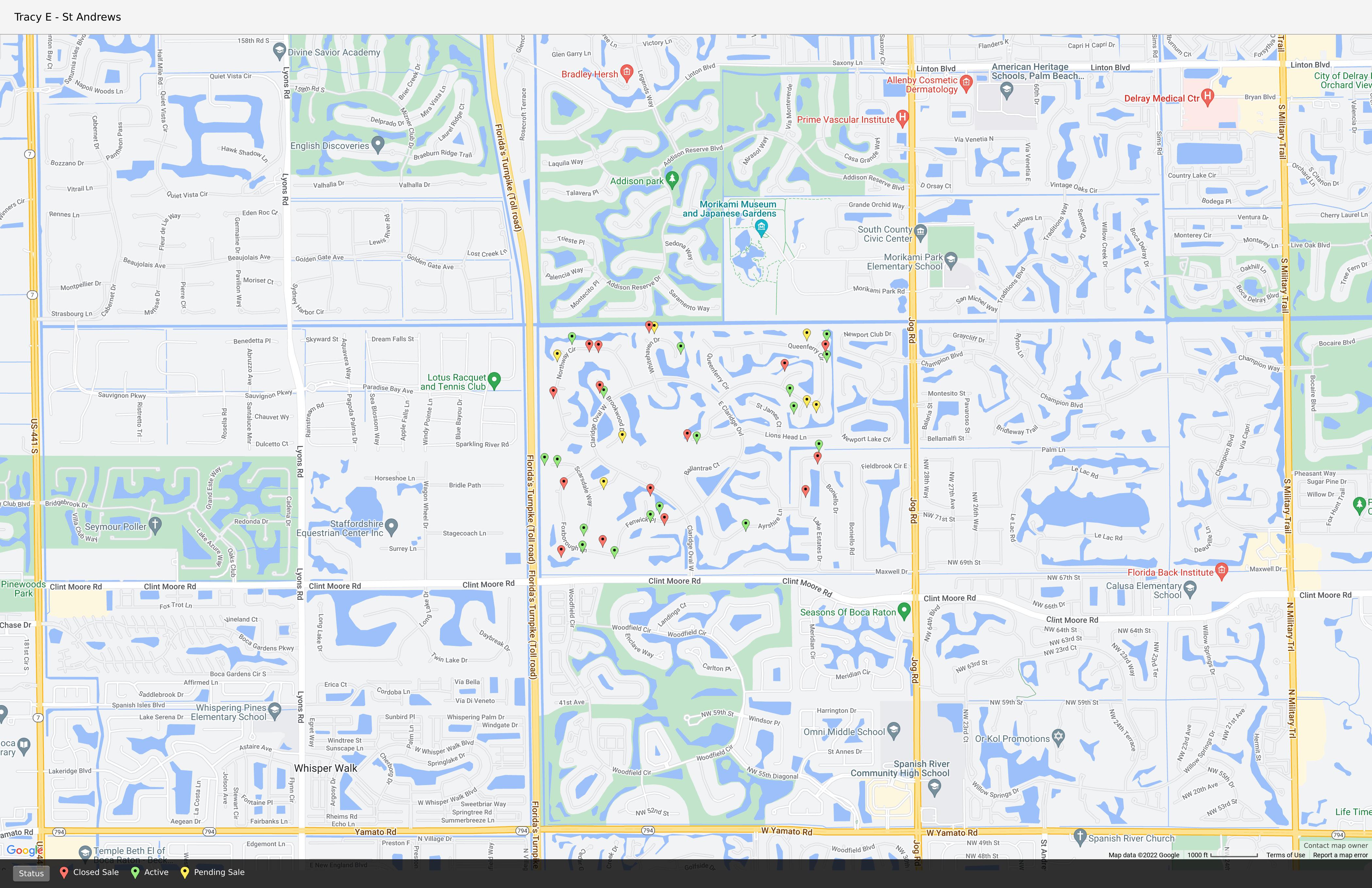 YOUR NEXT HOME AT ST. ANDREWS COUNTRY CLUB Homes Recently Sold: 15 Average Active List Price: $4,354,647 Average Sold Price: $3,763,167 Average Days On Market (Solds): 64 AT A GLANCE © 2022 Google Pending Active Sold This map is a visual representation of the data on the opposing page. The data and corresponding location pins are deemed to be accurate but not guaranteed. Some location pins may not be visible and/or updated with the latest location data.