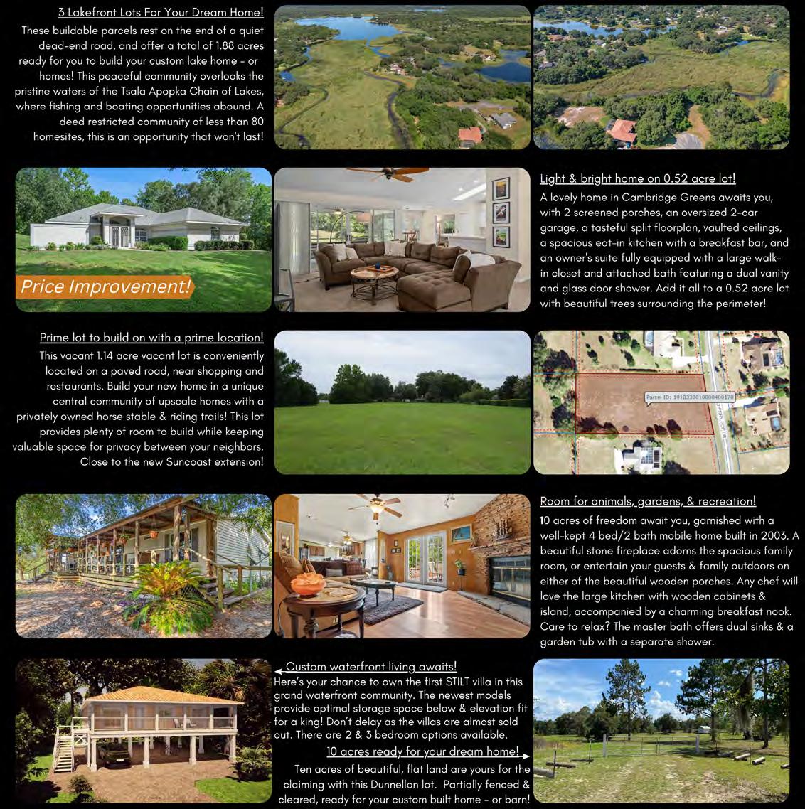Keith Fritch - Account Executive 352.317.5353 homesnland@gmail.com Homes & Land magazine is published by NewPoint Franchisor, LLC, 12912 Hill Country Blvd., Suite F-245, Bee Cave, TX 78738, Telephone 512-593-6144. Email: info@npmg.com. Copyright © 2022 NewPoint Franchisor, LLC. Reproduction of any photographs, artwork or copy is prohibited without prior written permission of the publisher. All advertised properties are subject to prior sale or withdrawal without notice. NewPoint Franchisor, LLC is not a registered real estate broker and this magazine offer isnot an effort to assist in the buying or selling of real estate. Neither the advertisers, Publisher nor Homes & Land are responsible or liable for misinformation, misprints or typographic errors. Advertising in Homes & Land Magazine is limited to licensed real estate brokers and their sales associates and to developers and commercial businesses. Advertising is not available to private home sellers. Real estate advertised in this magazine is subject to the Federal Fair Housing Act of 1968 and its amendments. This magazine will not knowingly accept any advertising for real estate that is in violation of the law. Dwellings advertised in this magazine are available on an equal opportunity basis. Showcase Properties of Central Florida recognizes the importance of Breast Cancer Awareness Month See their ad on the Back Cover OF OCALA MARION COUNTY