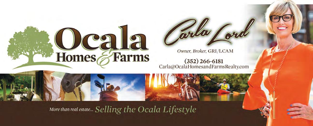 Continued on next page 5 Laurie Whelpley-Baker Showcase Properties of Central Florida 352.843.5300 BakerLaurie@yahoo.com Horses to Real Estate Whether you are a Horse Enthusiast or a Professional, Contact one of the agents for the Best Results in: Acreage, Farms, Equestrian Estates Residential Sales & Investments Mary O’Neal Showcase Properties of Central Florida 352.553.7324 MONeal@ShowcaseOcala.com A Leader in Farm Sales See my ad • page 13 Claire