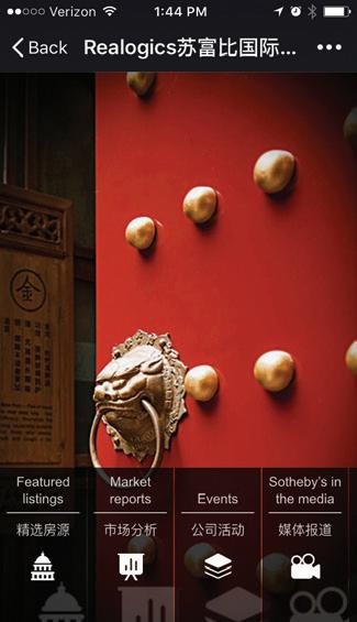 Realogics Sotheby’s International Realty continues to expand its Asia Services Group through one-ofa-kind endeavors that include a custom WeChat App developed with adSage, exclusive features on Juwai.com, and events in partnership with AREAA.