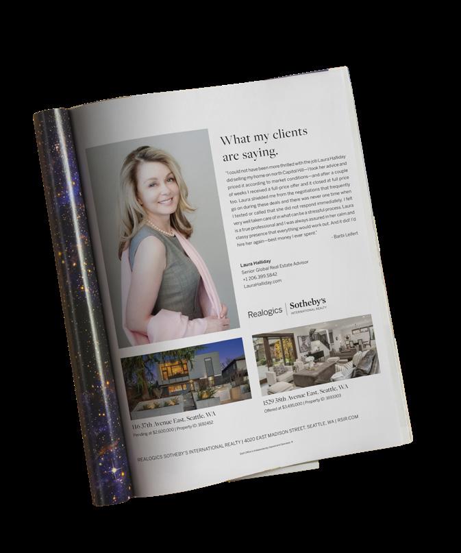 To put it quite simply, Laura Halliday represents remarkable homes and discerning clientele with ease. The secret to her success fuses unwavering loyalty and savvy market insights with a sprinkle of candor. An established senior global luxury real estate advisor with over 25 years of expertise, Laura is unencumbered by even the most challenging transactions, drawing on an established track-record and flair for creative solutions. Laura’s clients appreciate her long-standing legacy of service, acumen, and consistent communication every step of the way. Laura’s alignment with Realogics Sotheby’s International Realty is a key ingredient in her special sauce. Together with her firm, she provides unrivaled client care, innovative marketing solutions, and a truly global platform of connections around the world. This paired with Laura’s intimate knowledge of Seattle’s preeminent neighborhoods forms a killer combo, positioning her clients for success. A longtime resident of Broadmoor, Laura is deeply connected to her community. She lends her time and resources to the Junior League of Seattle and has chaired some of their most prominent fundraisers including Kaleidoscope, a holiday gift bazaar, and Simply Classic, an award-winning cookbook.