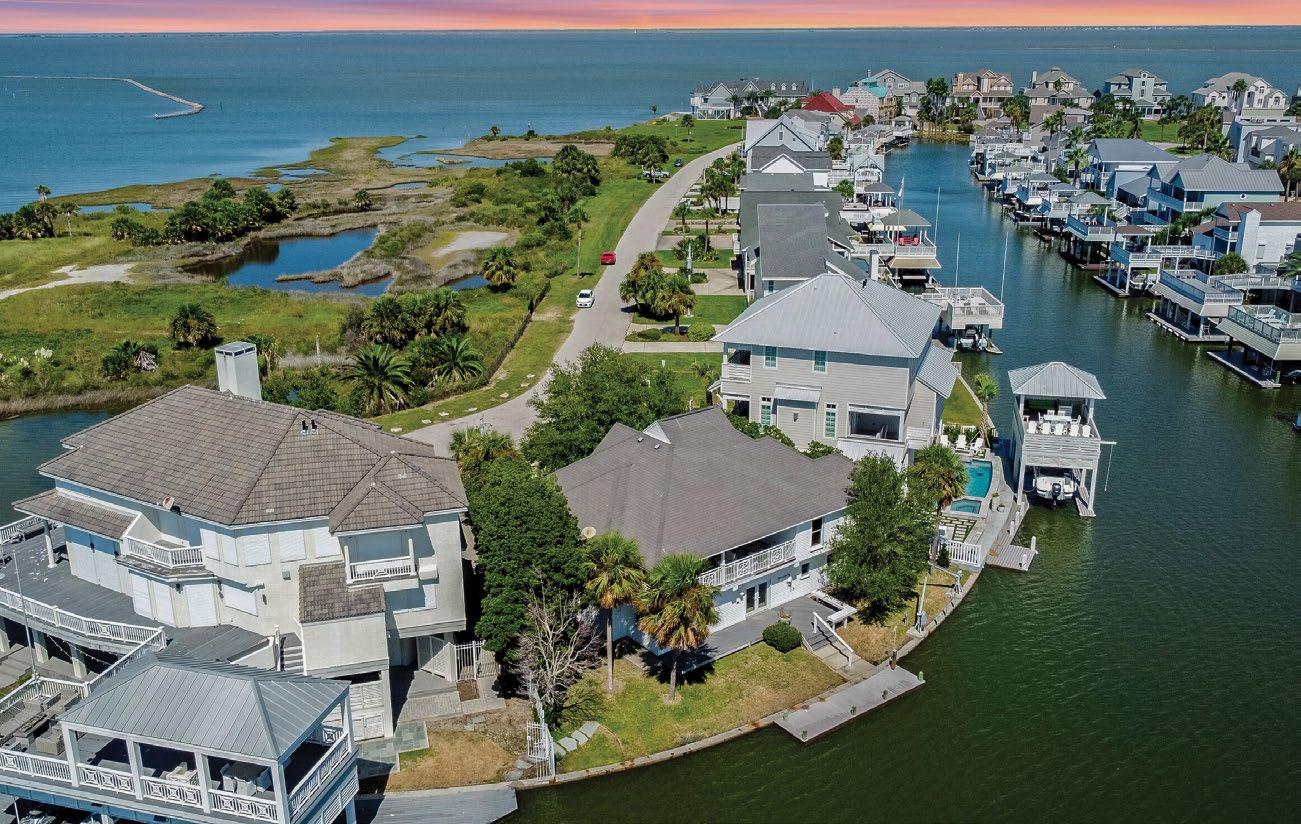 Better than Bayfront, this canal home offers bay views off the West Deck & open water views on the East decks. On the street side, you will love how it is nestled on a cul-de-sac surrounded by lush landscaping. On the waterside you will be overjoyed by the wide water views and over 100 ft of water frontage. Take the stairs or elevator up to the main area of the home. The coastal chic home was designed to be cozy & easy to maintain. Finishes include beadboard walls & cabinets, tile flooring, granite countertops, & custom window treatments. High ceilings and walls of windows and doors brings the outdoors in. No shortage of closet space in this home! With immediate access to the bay & short golf cart ride to the beach, you get the best of both worlds. You will also be able to enjoy the epic Galveston sunrises & sunsets! Conveys fully furnished & with a coveted social membership to the Galveston Country Club.