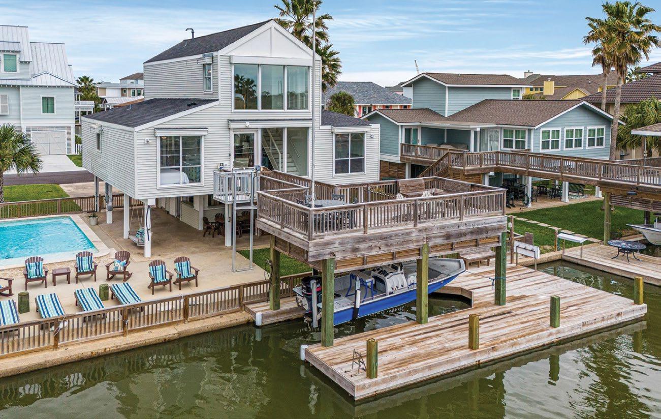 Better than Bayfront, this canal home offers bay views off the West Deck & open water views on the East decks. On the street side, you will love how it is nestled on a cul-de-sac surrounded by lush landscaping. On the waterside you will be overjoyed by the wide water views and over 100 ft of water frontage. Take the stairs or elevator up to the main area of the home. The coastal chic home was designed to be cozy & easy to maintain. Finishes include beadboard walls & cabinets, tile flooring, granite countertops, & custom window treatments. High ceilings and walls of windows and doors brings the outdoors in. No shortage of closet space in this home! With immediate access to the bay & short golf cart ride to the beach, you get the best of both worlds. You will also be able to enjoy the epic Galveston sunrises & sunsets! Conveys fully furnished & with a coveted social membership to the Galveston Country Club.