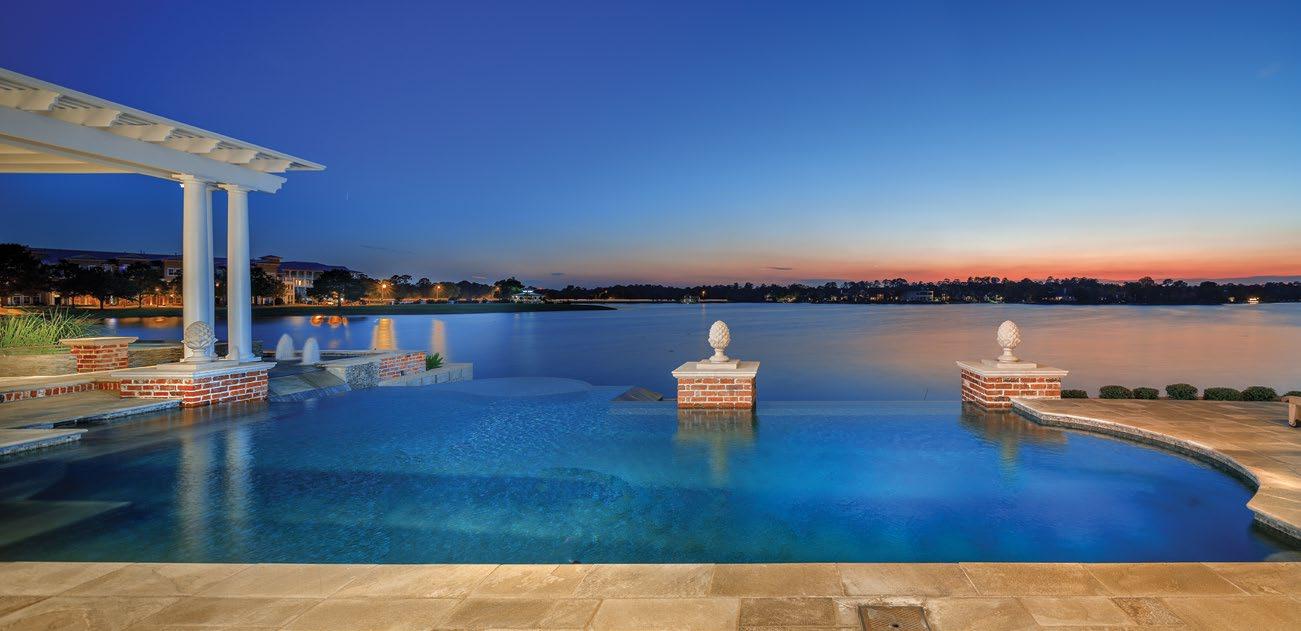 Dazzling 4BR+Office & Bonus Room/5.5BA : 8,575± GSF : Captivating Resort Style Pool & Spa : Soundfront Dock : .56± Acres : Media Loft