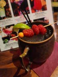 Let's start off with an expresso martini There is something about those lately even though I've had several elsewhere, I want to try this one. And all I can say is, as this is the rst thing I'm tasting, It's the perfect balance of smooth and the right hints of coffee avor for the perfect espresso martini. Candice ordered the “Raspberry Lavender Mule”, served in the ideal vessel, a copper mug, as the beverages matched the décor, and the specialty drink menu is perfect.