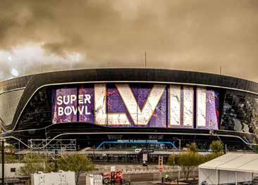 Things certainly looked quite a bit different in our city when Super Bowl LVIII came to town! On February 11, 2024 the stadium campus transformed and fans from all over the world came into town to watch the Super Bowl LVIII at Allegiant Stadium. The Gameday Experience took place from 11:30-2:30 PST and kickoff directly followed. This year’s Super Bowl was the most watched program in American television history and it’s no surprise that it happened right here in our vibrant city!
