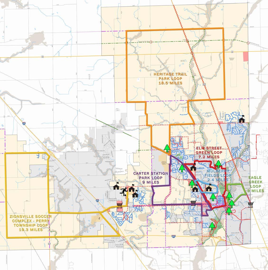 The physical improvement recommendations in the Plan will increase connectivity, accessibility and safety for pedestrians and cyclists. The education, encouragement and enforcement programs will foster a culture that values active transportation and recreation. These improvements will change not only the physical appearance of Zionsville but also the cultural environment for all users of the system. Zionsville will provide opportunities for people to be healthier, reduce vehicular miles traveled, support economic development, and attract tourism activity.
