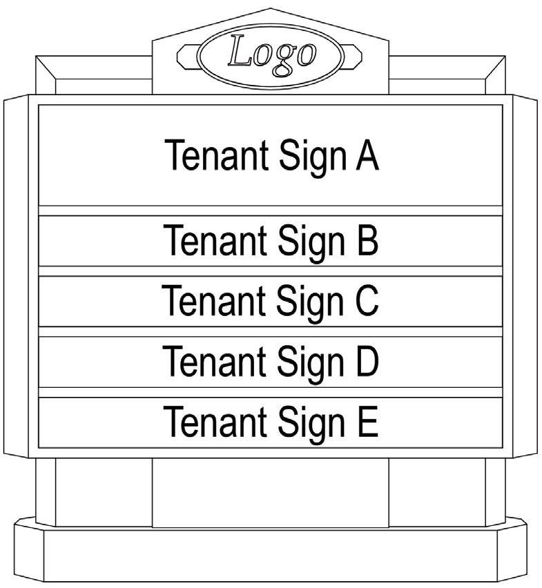 Signage is incredibly important to businesses in the district, but sign size, number, and location must be controlled to ensure quality visual character of the area. Signage designed to serve multiple tenants in a development can offer several benefits. Aesthetically, it decreases the need for multiple sign foundations or structures along a streetscape and creates the opportunity to use this space for landscaping or other site features. This type of signage calls the attention of drivers and pedestrians to one location to determine the businesses within that development. Integrated signage should: