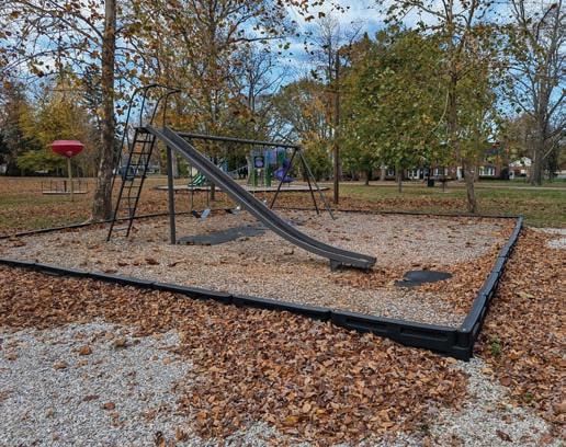 • Mulch safety surfacing in high-use areas of the playgrounds, such as swings, and in areas at the base of ramps