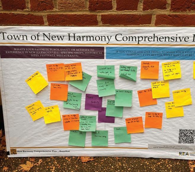 This goal focuses on utilizing both the town’s parks and streets as vibrant spaces that reflect and celebrate the town’s historical and cultural identity. By integrating art installations, historical markers, and educational displays within the parks and throughout town, New Harmony can create experiences that connect visitors and residents with the town’s unique history. 2 4 3