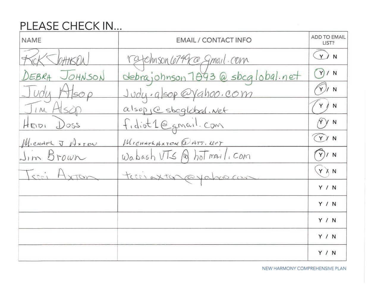 It is with gratitude that we acknowledge the many individuals from the Town of New Harmony who helped develop this plan.
