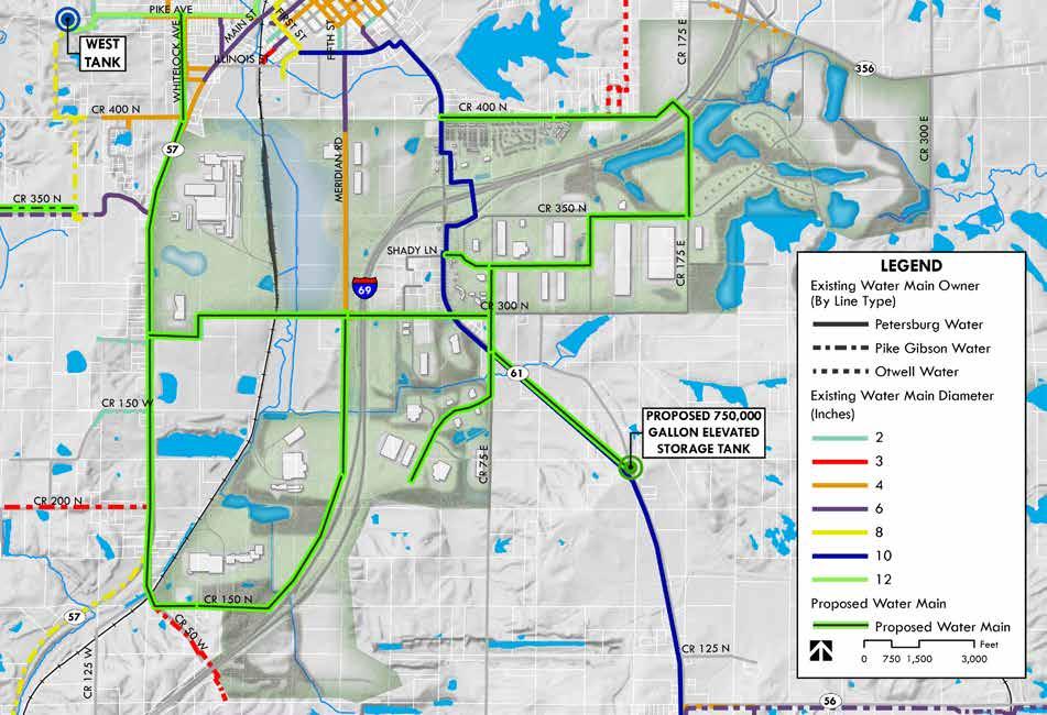 6. Construct a new 750,000 gallon, elevated water storage tank along the SR 61 corridor, south of Petersburg in order to increase system storage to be between 1 to 2 days average system usage plus fire flow.