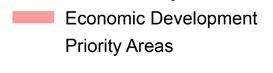 The Pillar Priority Areas map works alongside the future land use map. It helps the County further delineate priority areas for growth and development, and where future investment should be directed.