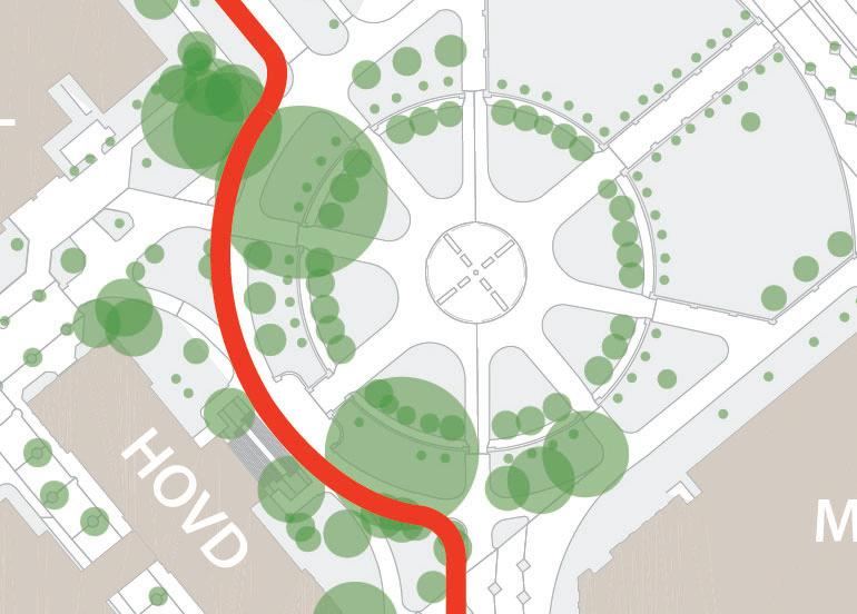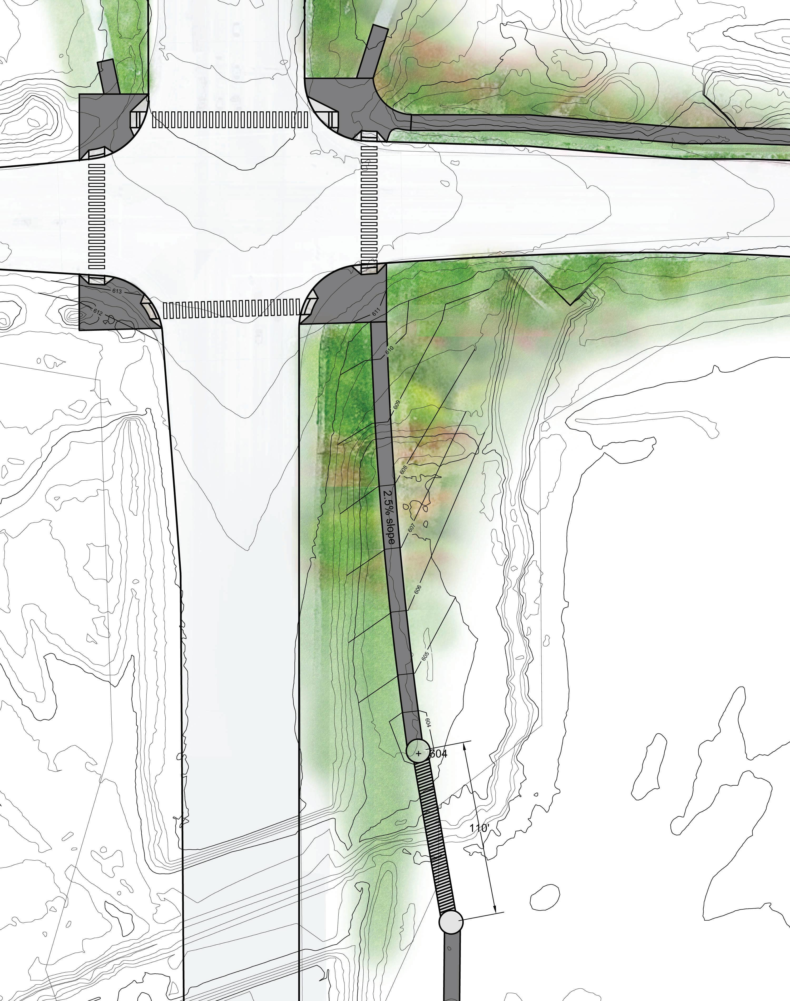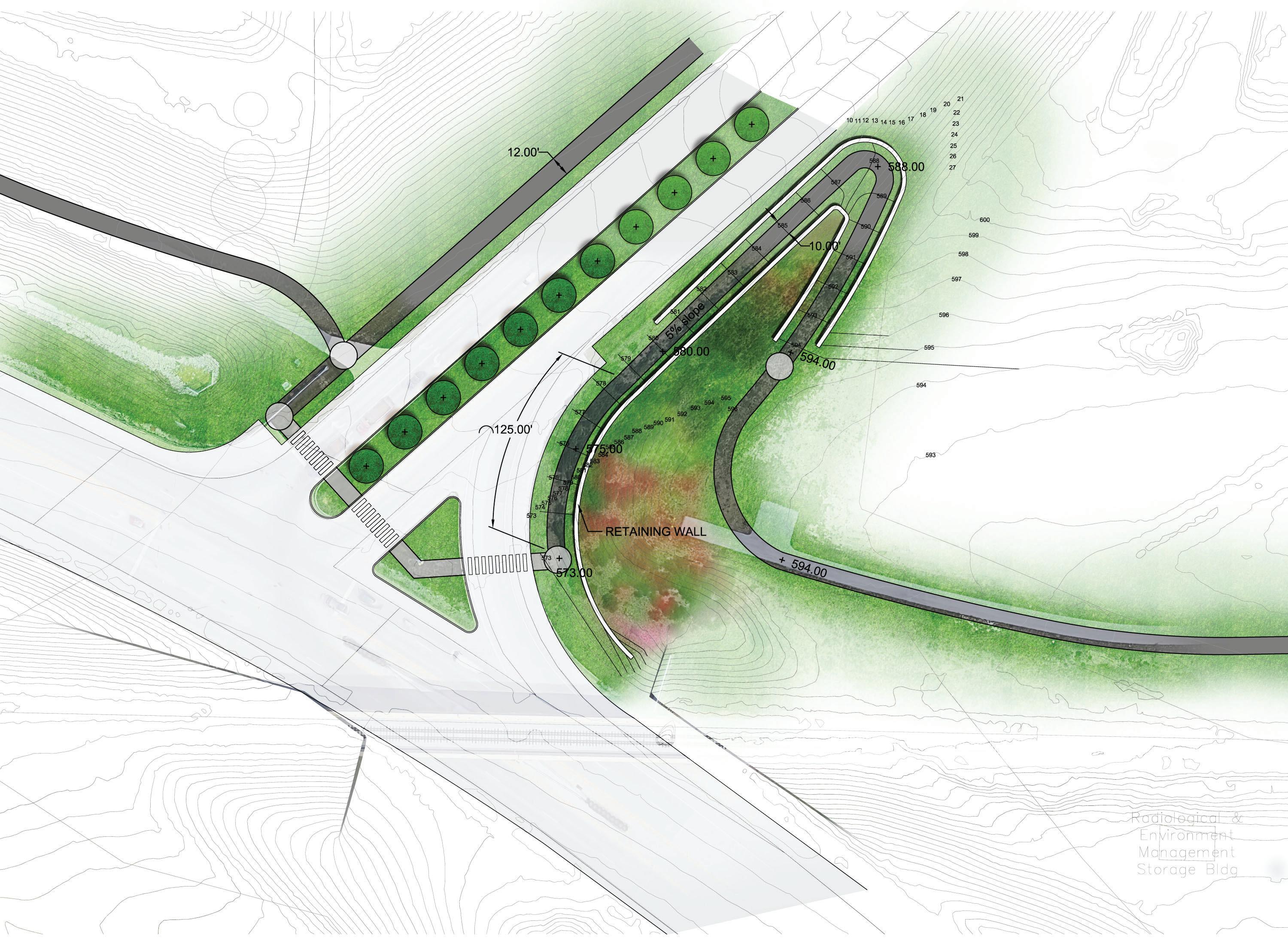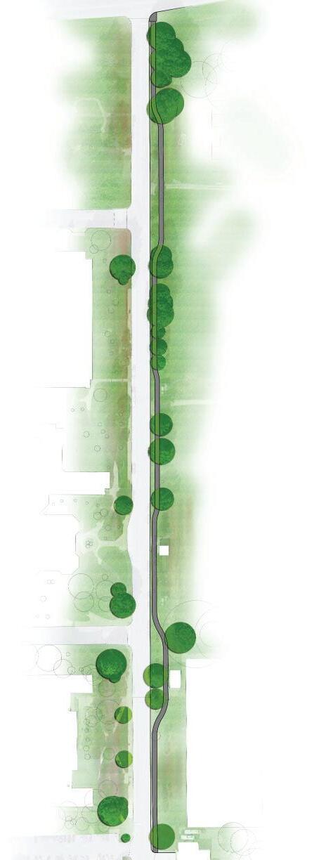 • Meanders around existing utilities and trees
