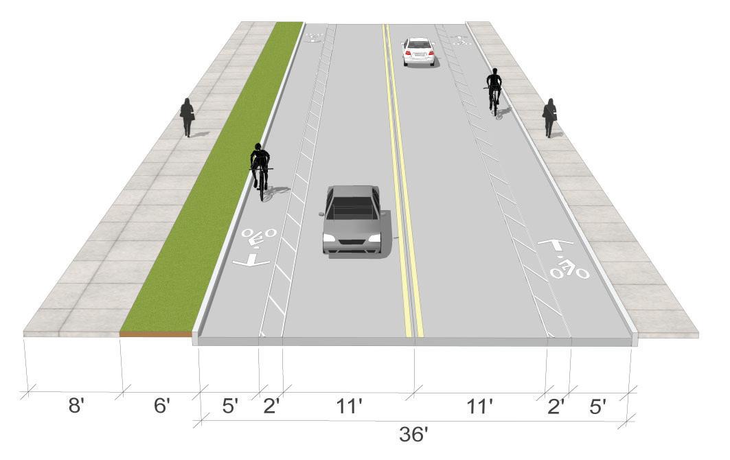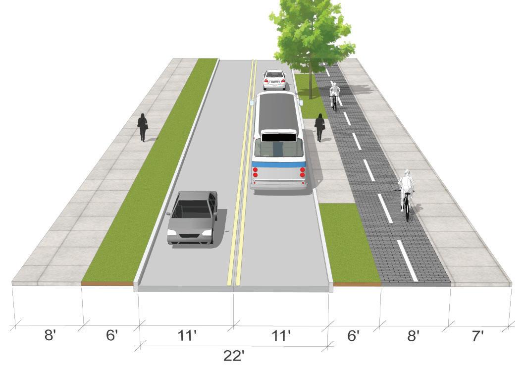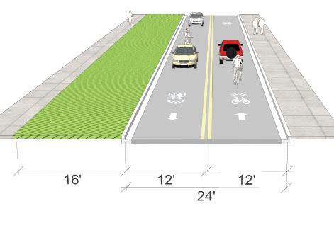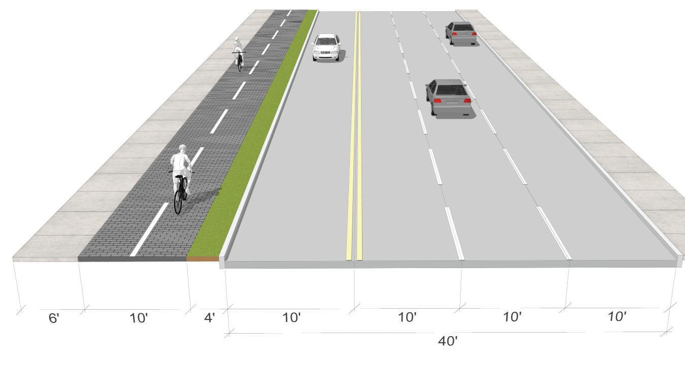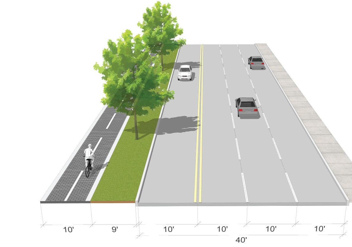 • Construct an asphalt shared-use path and maintain a minimum of 4’ to 5’ buffer between the path and the edge of roadway